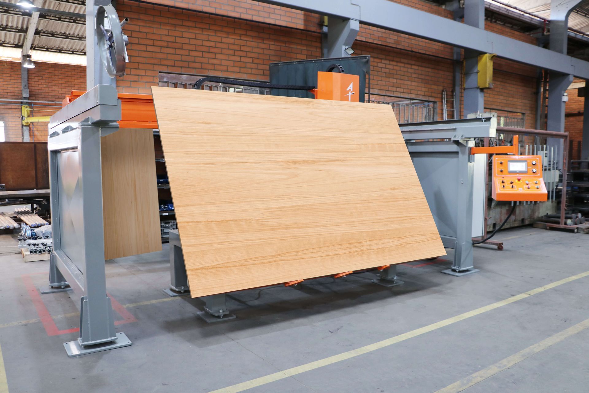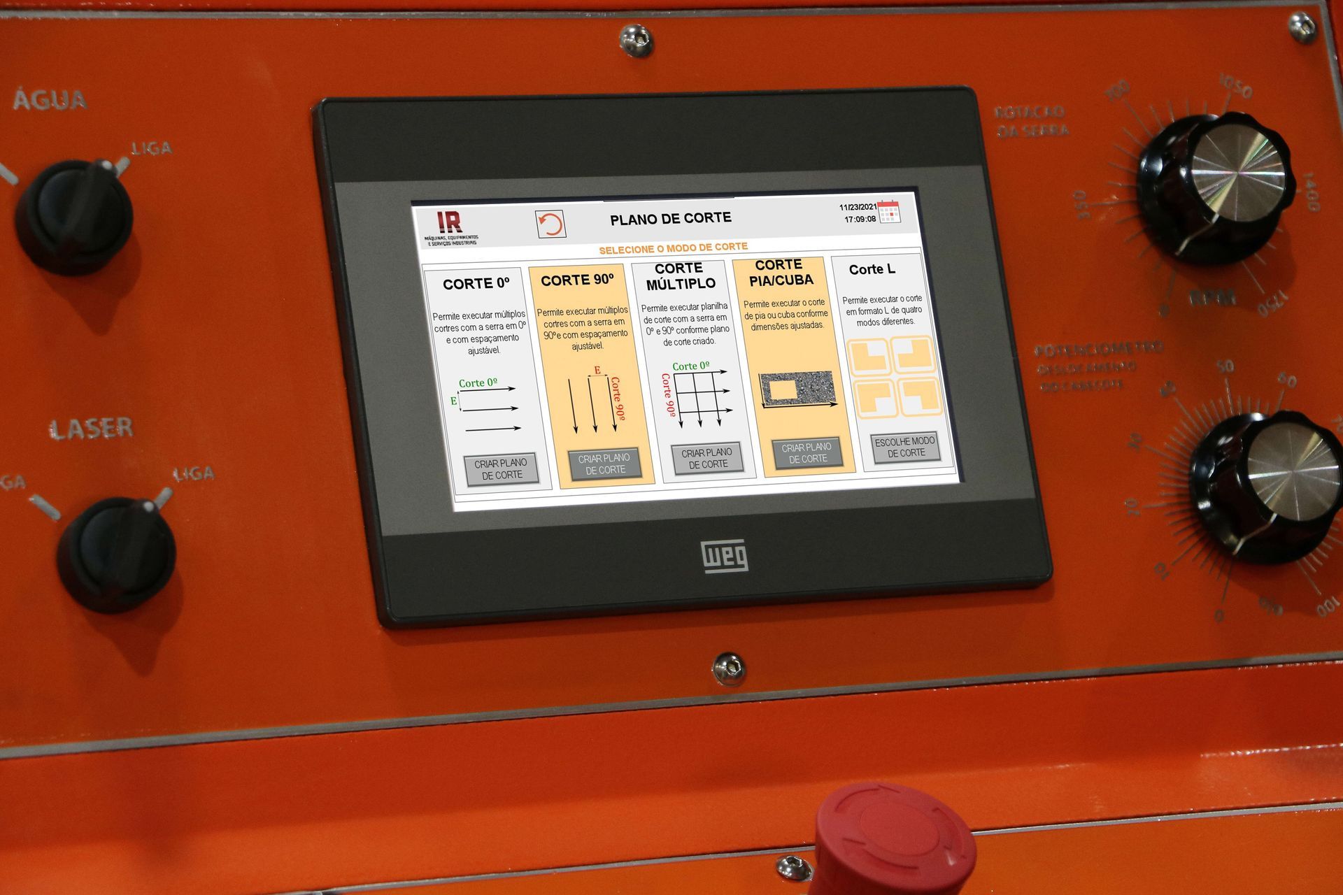 - Painel com tela 10” touch screen, com diferentes receitas para cortes múltiplos, transversais e longitudinais;